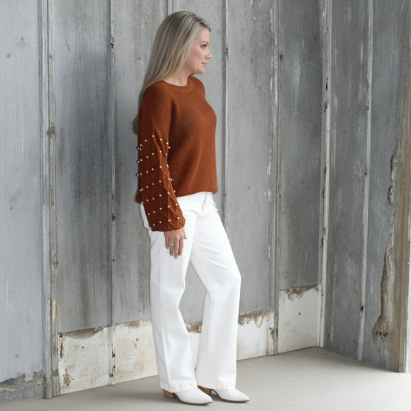Leah - Denim Sleeve Sweater Top